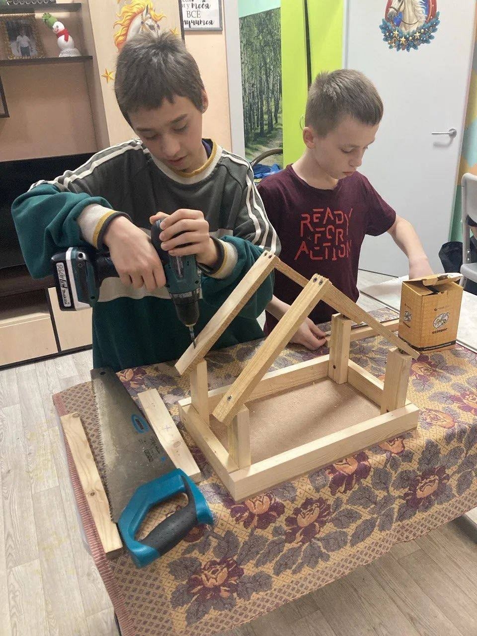В Одоевском стационарном отделении социальной реабилитации несовершеннолетних в кружке "Юный столяр" под руководством воспитателя Кенжаева М.А. мальчики изготовили скворечники.