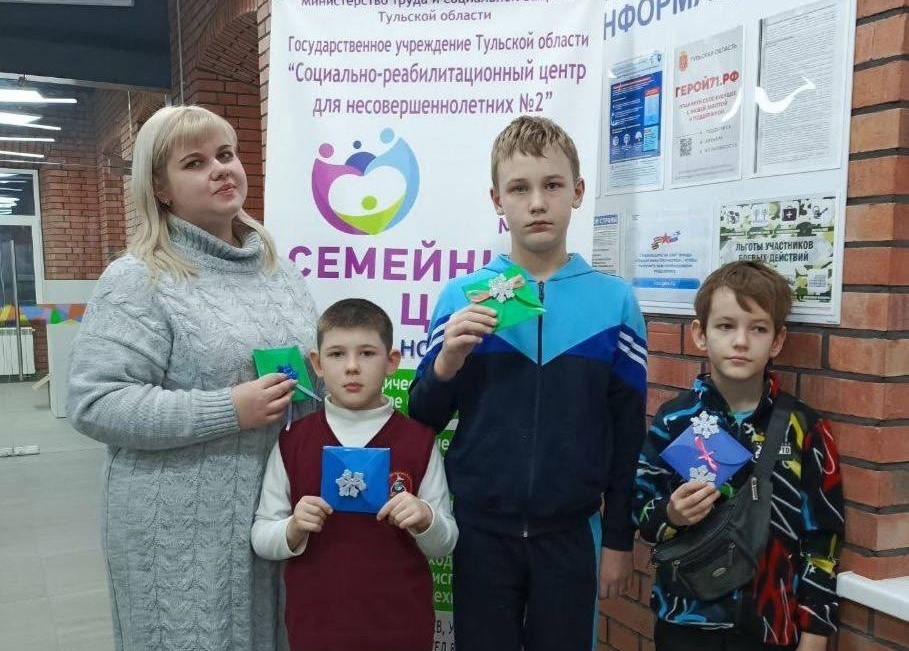 В преддверии Нового года в Одоевском отделении помощи семье и детям дети совместно с социальным педагогом Вероникой Тагильцевой изготовили с любовью и благодарностью для участников СВО открытки-поздравления с тёплыми пожеланиями.