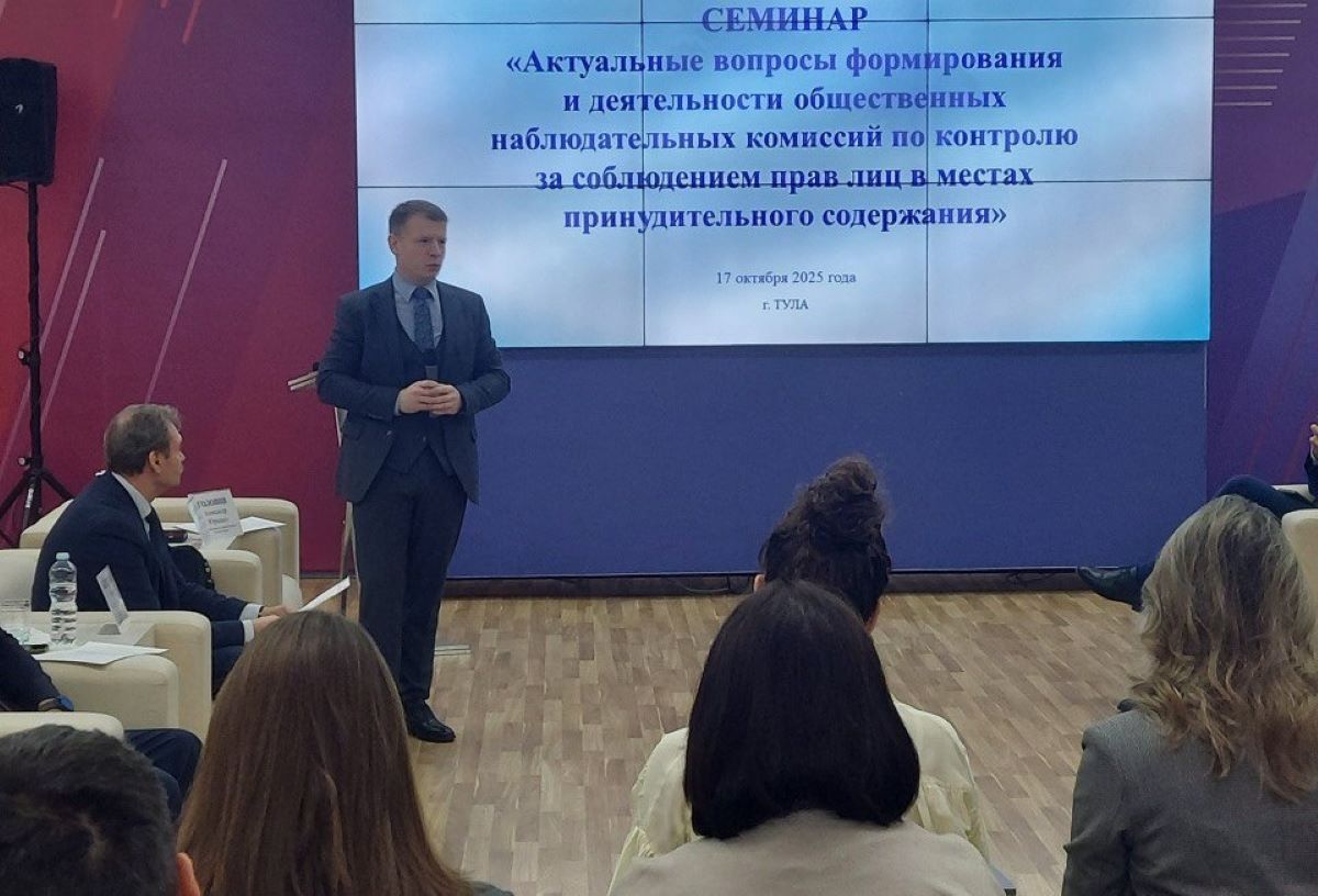 17 октября 2025 года в Туле прошел обучающий семинар на тему «Актуальные вопросы формирования и деятельности общественных наблюдательных комиссий по контролю за соблюдением прав лиц в местах принудительного содержания».