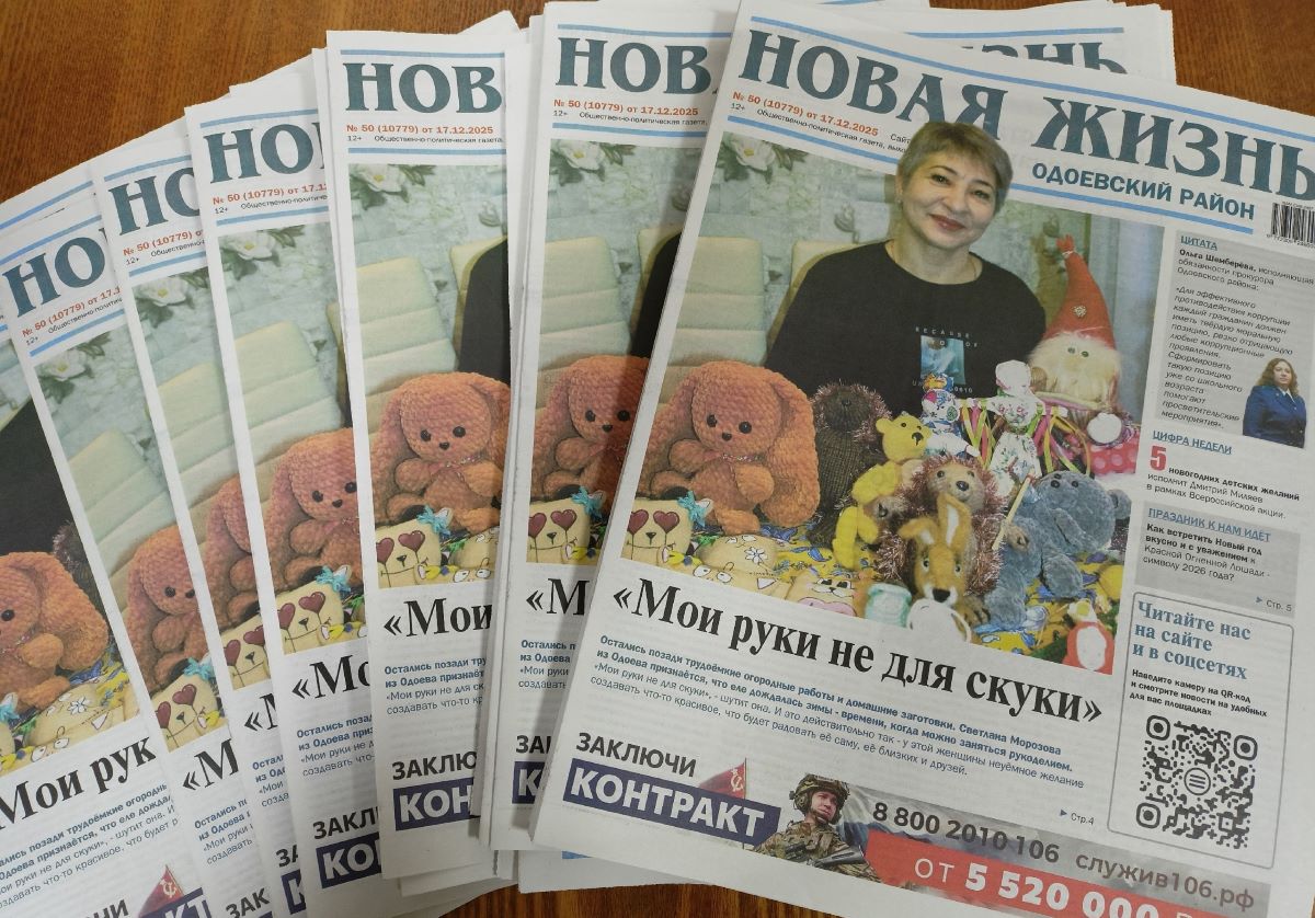 Сегодня, 17 декабря 2025 года, вышел в свет 50-й номер районной газеты «Новая жизнь. Одоевский район». Приобрести его можно на Почте России и в редакции. Приходите и будьте с нами в курсе событий региона и Одоевского района.
