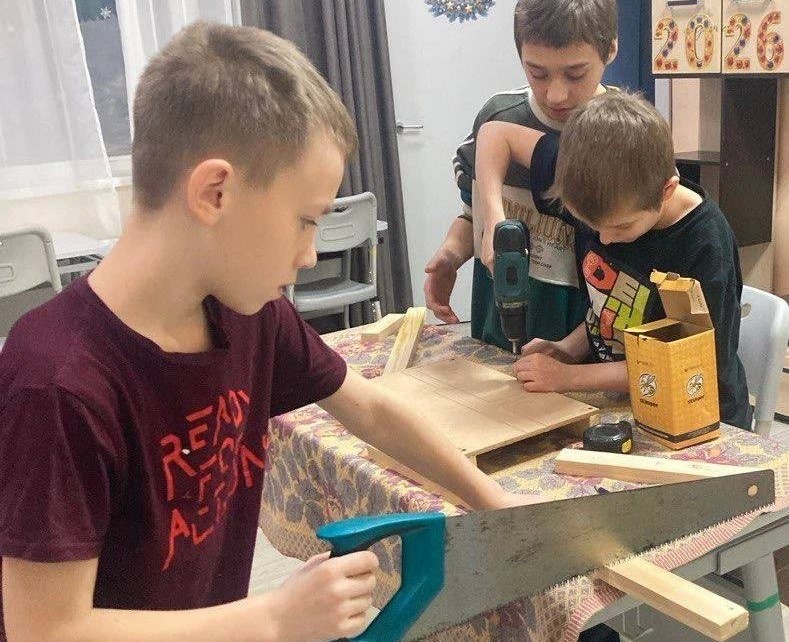 В Одоевском стационарном отделении социальной реабилитации несовершеннолетних в кружке "Юный столяр" под руководством воспитателя Кенжаева М.А. мальчики изготовили скворечники.