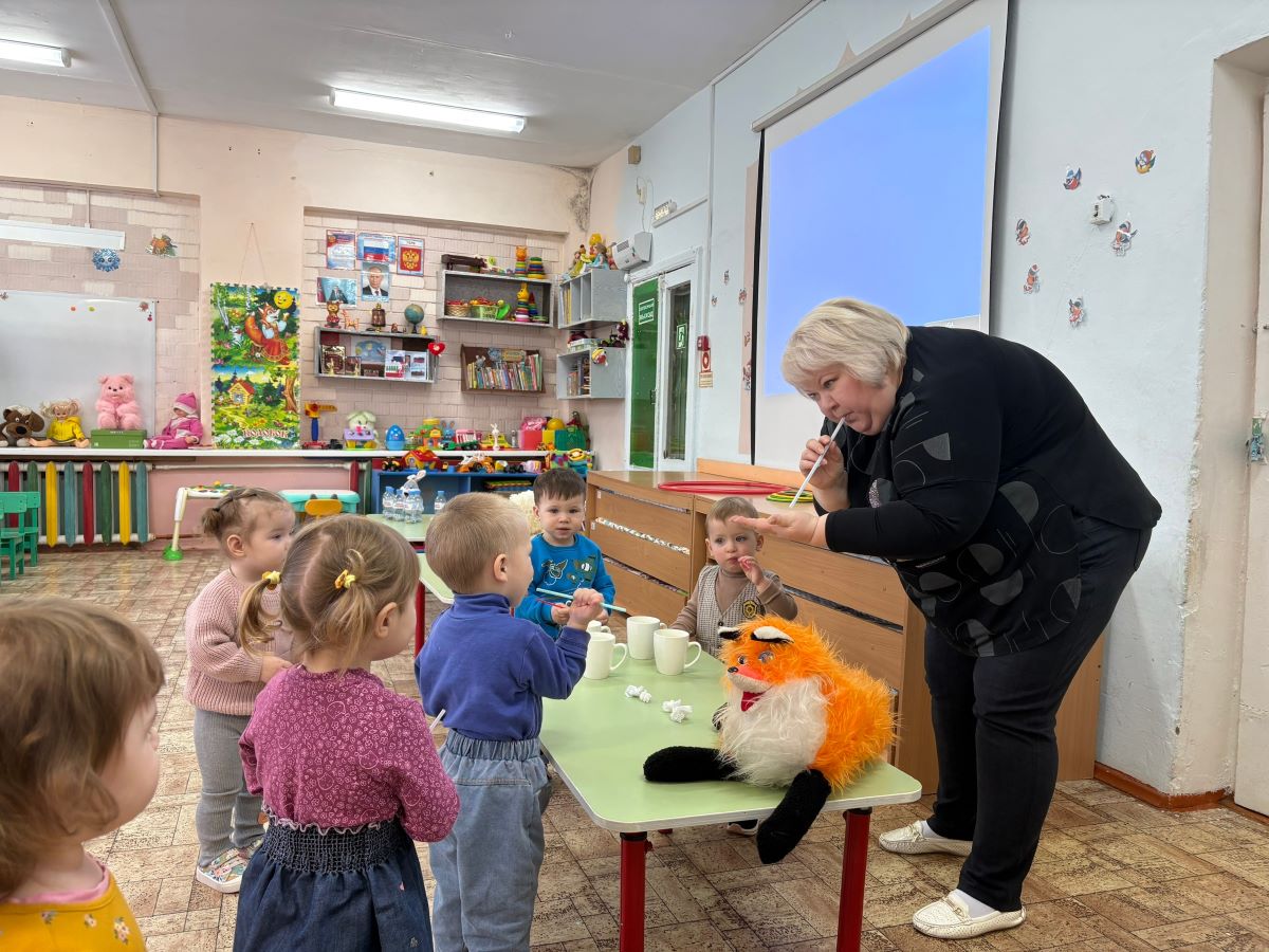 В одоевском детском саду "Сказка" проходит неделя педагогического мастерства.  «Путешествие в страну волшебных бутылочек, трубочек и мячиков» провела воспитатель Т.М. Курятова.